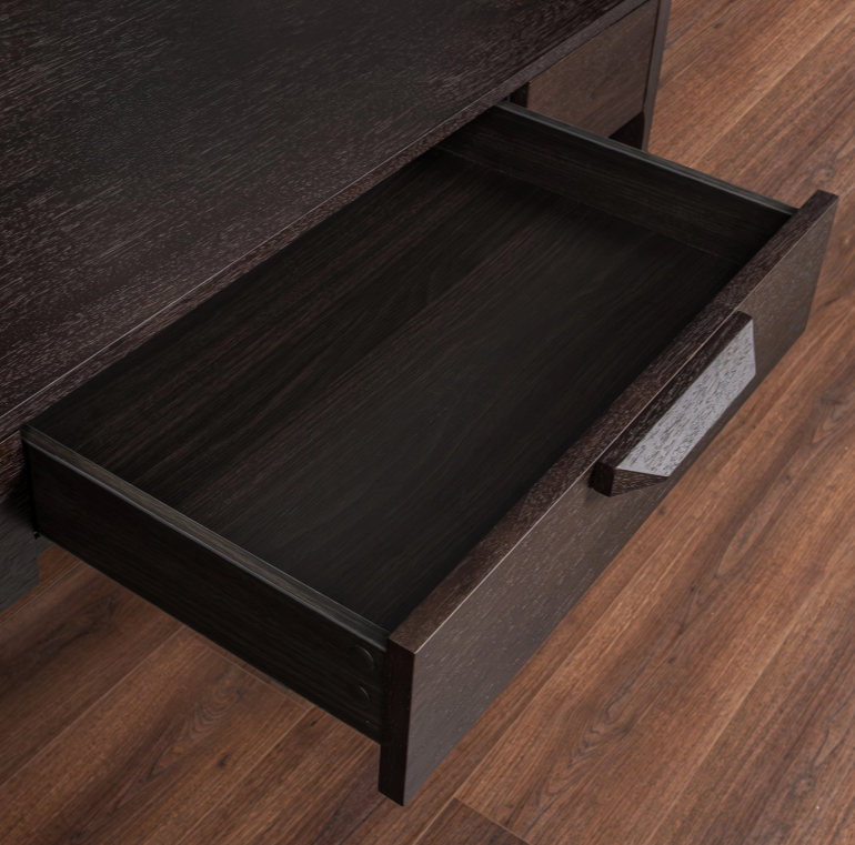 Для отделки использован натуральный шпон ореха, тонированный в глубокий оттенок горького шоколада, что подчеркивает элегантность и выразительный характер модели.