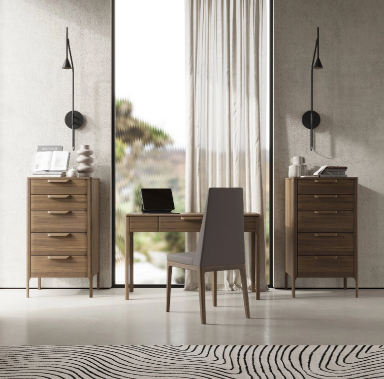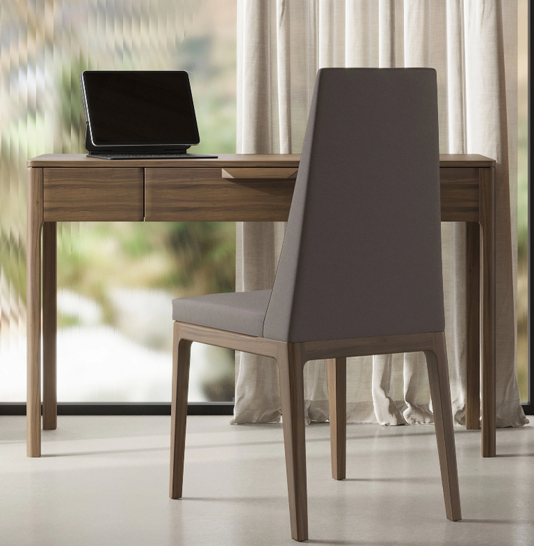 Письменный стол от бренда MOD Interiors выполнен в актуальном современном стиле, идеально подходит для домашнего кабинета или рабочего пространства. Столешница изготовлена из высокопрочного МДФ, а массивные ножки и изящная ручка выполнены из натурального дерева.