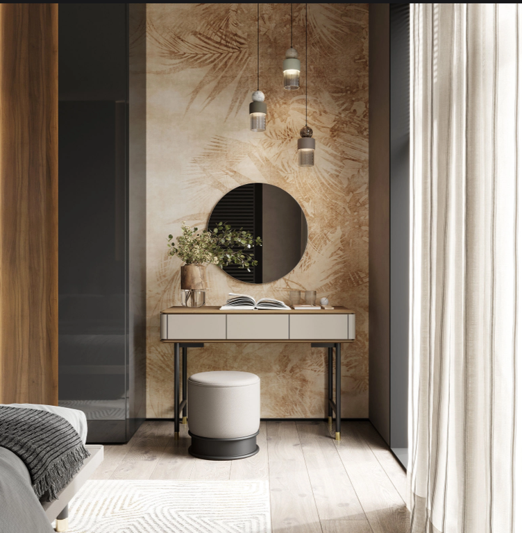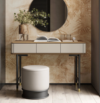 Туалетный столик из коллекции Altea от MOD Interiors выполнен в стиле mid-century modern с винтажным акцентом 60-х годов. Миниатюрный дизайн на высоких черных ножках с латунными наконечниками создаёт элегантный образ для будуарной зоны. Матовые фасады из сертифицированного МДФ визуально легкие и прекрасно рассеивают свет.