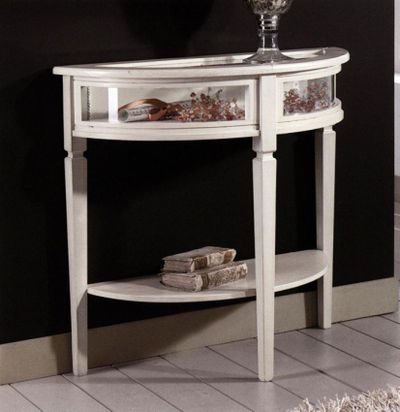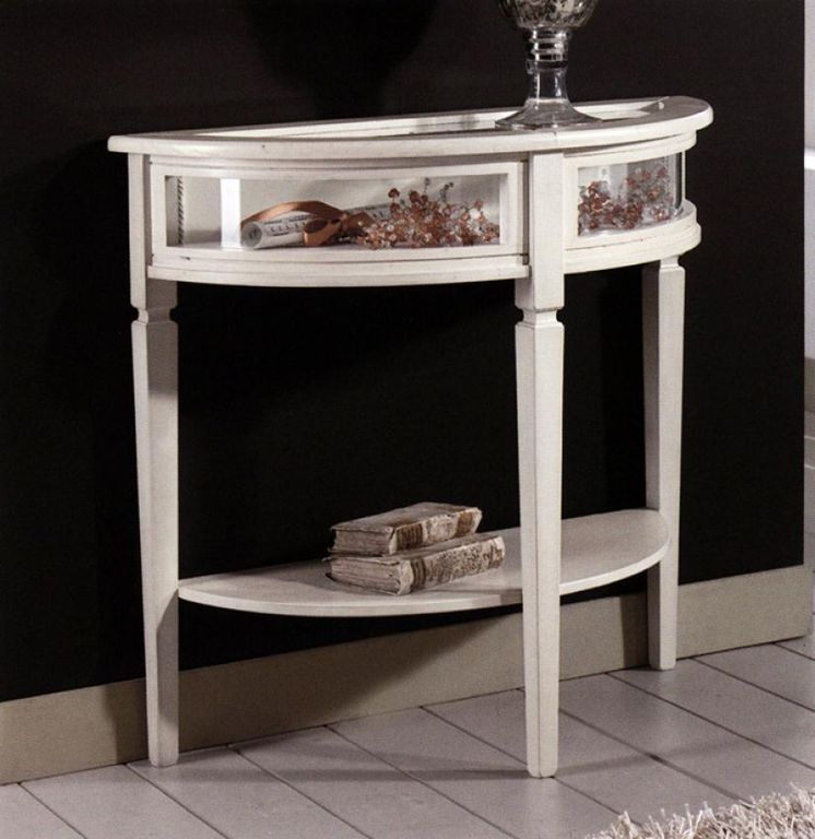 Оригинальная полукруглая консоль от итальянской фабрики Giuliacasa идеально впишется даже в самые компактные пространства. Особенностью модели является витринная прозрачная верхняя панель, которая позволяет стильно оформить любимые аксессуары или декор. Нижняя полка добавляет функциональности для хранения книг, сувениров или других нужных мелочей.