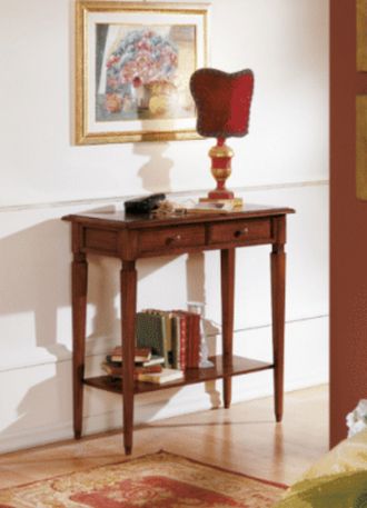 Компактная и функциональная консоль от итальянской фабрики Giuliacasa — отличный выбор для небольших помещений. Модель выполнена в сдержанном классическом стиле: прямые аккуратные ножки, элегантная столешница, два выдвижных ящика и дополнительная нижняя полка для хранения книг или аксессуаров.