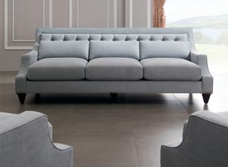 Диван 3-местный отделка шпон махагона C (Mahogany C), ткань серо-голубая рогожка (ART62799-col. 12)