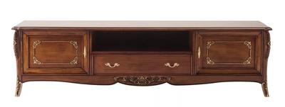 Материал: Конструкции, боковины, днища и рамы из орехового дерева покрыты шпоном вишни. Полки из орехового дерева, столешница из массива вишни 29мм. Задние части из многослойного ореха Танганика, столбы из массива ореха 80мм. Двери и ящики из массива орехового дерева 28мм покрыты палисандром.