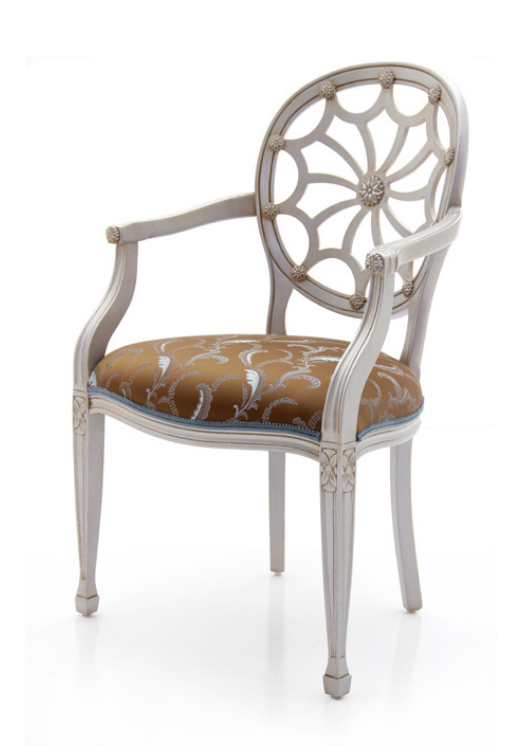 Стул с подлокотниками SOLE ART. 0706A – это воплощение итальянской элегантности и мастерства от фабрики SEVENSEDIE. Изящная круглая спинка с ажурным резным узором, напоминающим паутину, придает стулу неповторимый шарм. Мягкое сиденье, обитое золотистой тканью с изысканным рисунком, обеспечивает максимальный комфорт. Прочный деревянный каркас с декоративной резьбой гарантирует долговечность изделия. Стул SOLE ART. 0706A идеально подойдет для создания стильной и уютной атмосферы в гостиной, столовой или кабинете. Размеры: Ширина 60 см, Глубина 59 см, Высота 95 см.