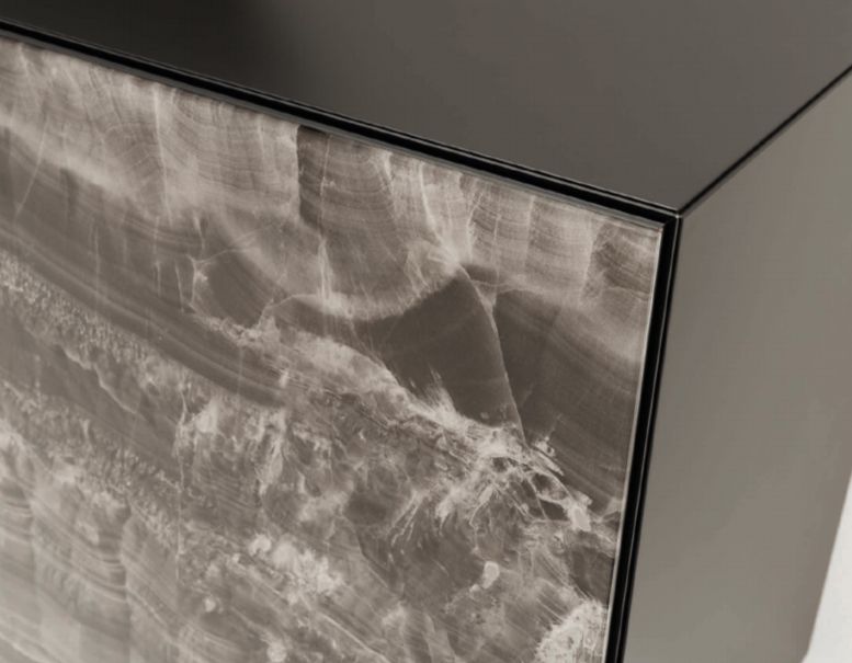 Основной акцент в дизайне комода AT213 сделан на уникальную отделку, которая искусно имитирует благородство и глубину натурального камня. Выразительный рисунок камня, словно созданный самой природой, придает каждому изделию неповторимый характер. Темные оттенки с светлыми прожилками создают динамичную и одновременно гармоничную композицию, подчеркивая современный стиль мебели.