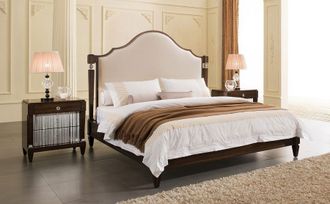Кровать с решеткой отделка шпон вишни C (Cherry C), ткань светло-бежевый велюр (Moki-02)