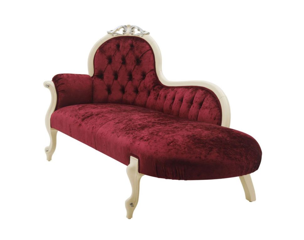 Мягкая, приятная на ощупь обивка доступна в различных цветовых вариантах, что позволит вам подобрать идеальный вариант, гармонично сочетающийся с вашим интерьером. Каретная стяжка спинки и изящно изогнутые ножки придают кушетке особый шарм и подчеркивают ее благородное происхождение.