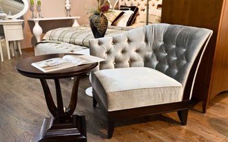 Полукресло (правое) отделка шпон вишни C (Cherry С), ткань серебристо-серый велюр (Moki-51)