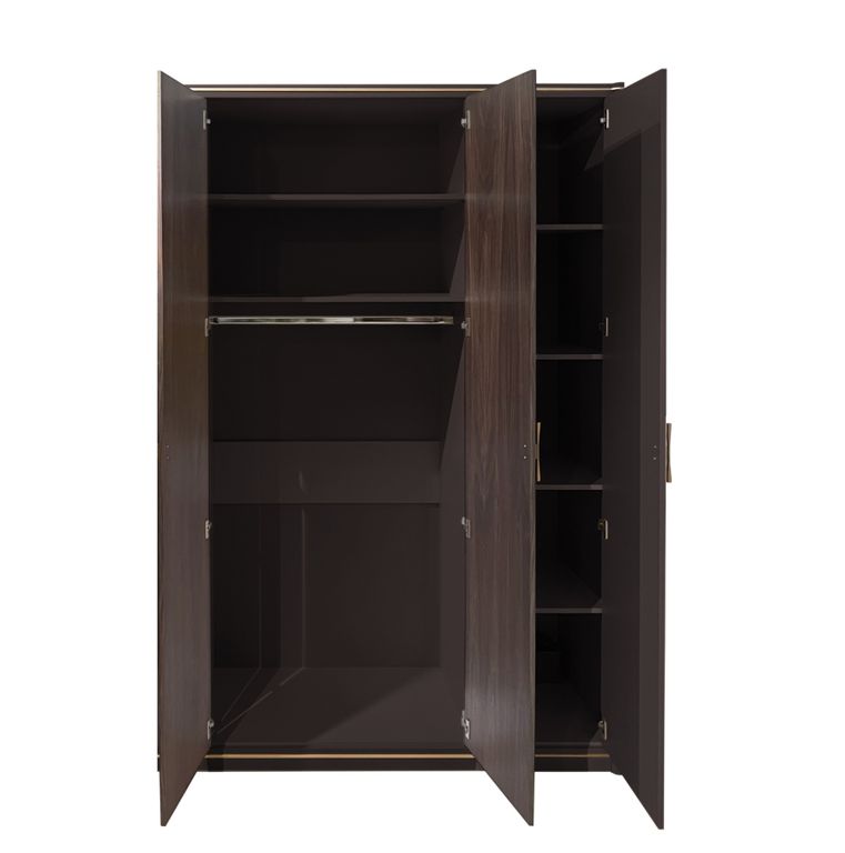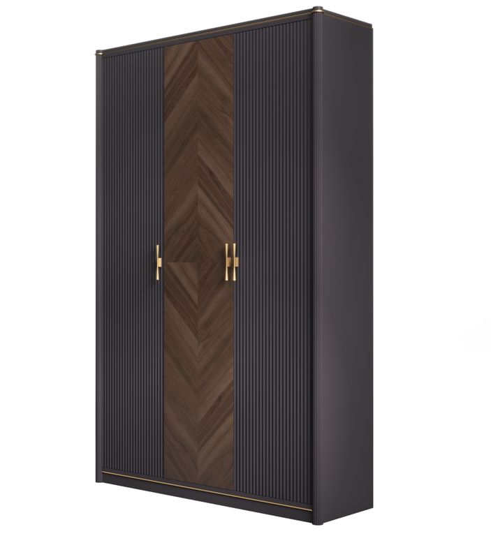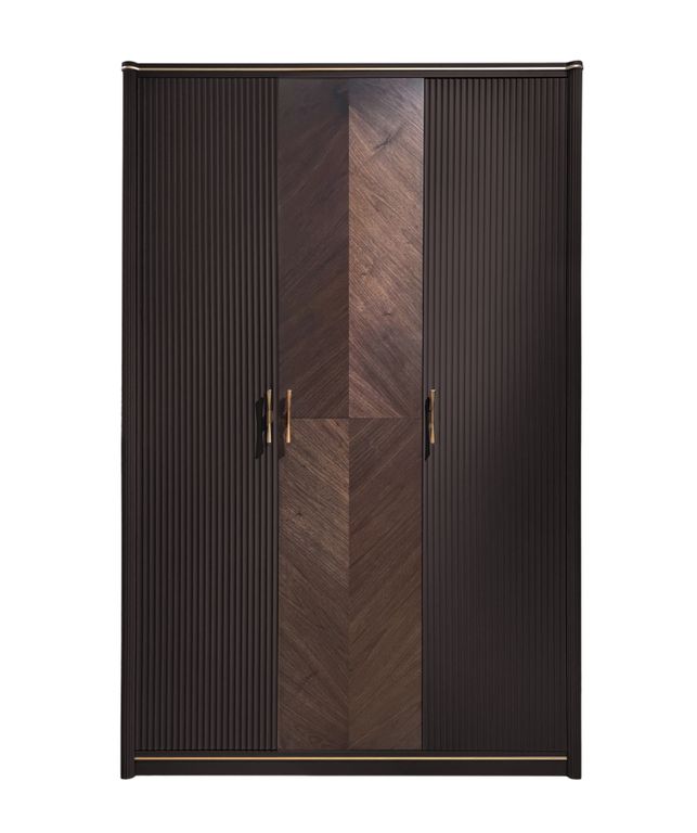 Трехдверный платяной шкаф Т-153 из коллекции Венеция от белорусской фабрики Timber – воплощение элегантности и функциональности. Глубокий цвет моккачино в сочетании с благородной текстурой американского ореха создает изысканный образ, который гармонично впишется в современный интерьер. Шкаф изготовлен из высококачественных материалов: МДФ, массива ольхи и шпона американского ореха, что гарантирует долговечность и надежность. Рельефные фасады с геометрическим рисунком придают шкафу уникальный характер. Вместительное внутреннее пространство позволит аккуратно разместить весь ваш гардероб. Размеры: 145*61,8*223 см.