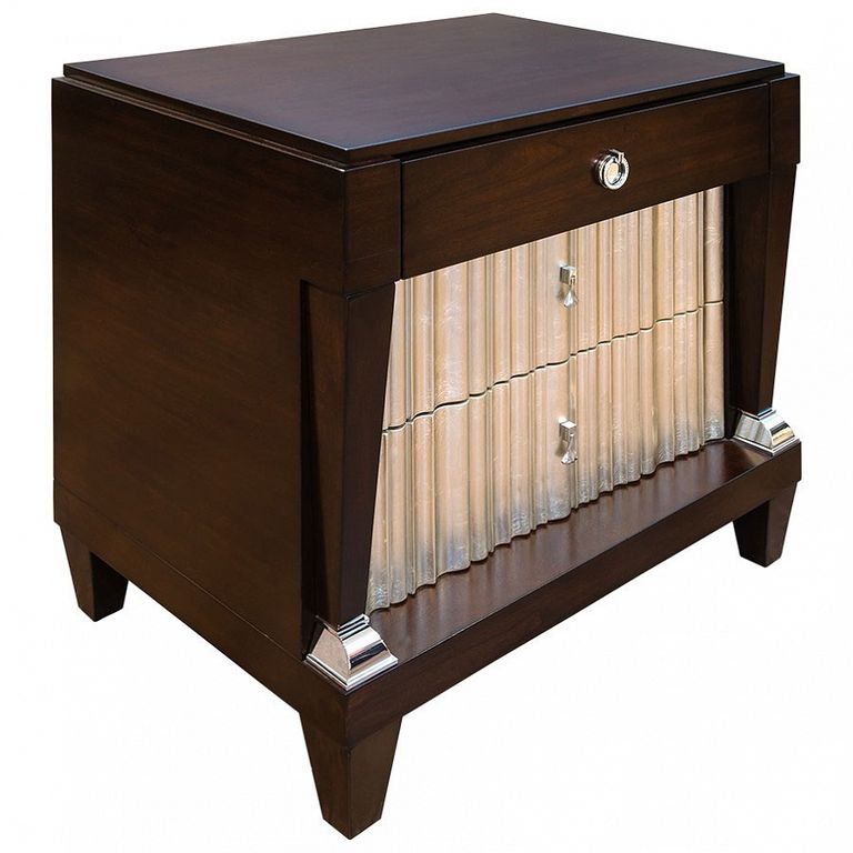 Прикроватная тумбочка отделка шпон вишни C (Cherry С), серебряное напыление (silver plated B)