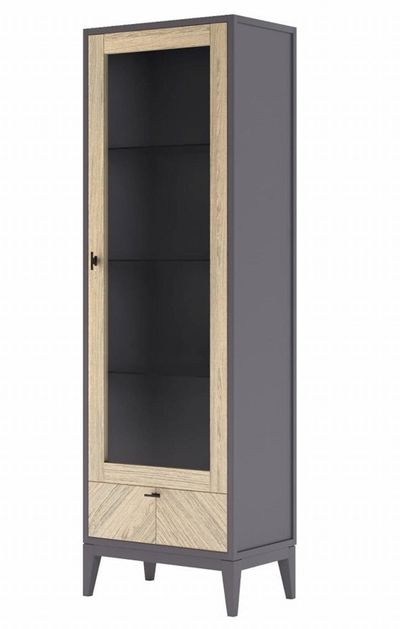 Сочетание массива дуба, МДФ и шпона ясеня, цвет Мокко/Дуб серебристый, а также геометрический узор на фасаде создают неповторимый дизайн. За стеклянной дверцей удобно разместить и демонстрировать любимые коллекции, посуду или декоративные элементы. Витрина «Тоскана» – это качество, стиль и функциональность в одном изделии.