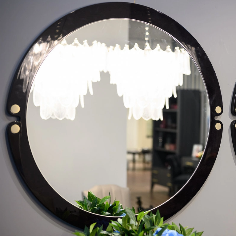 Круглое зеркало выполнено в стиле Ар-деко. Рама изготовлена из высококачественного шпонированного МДФ.