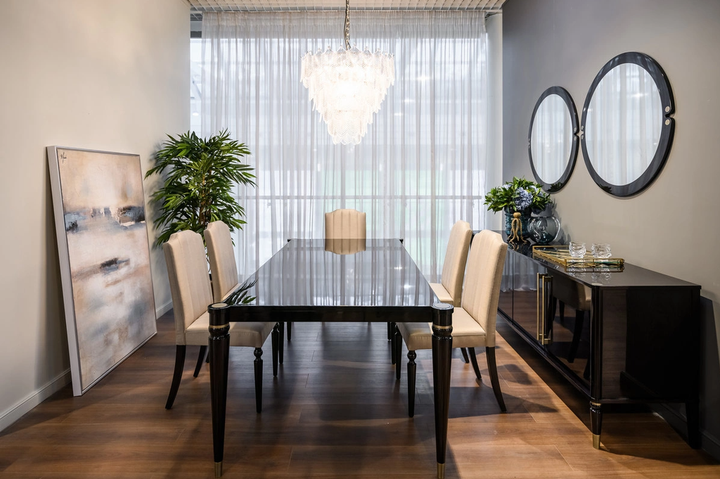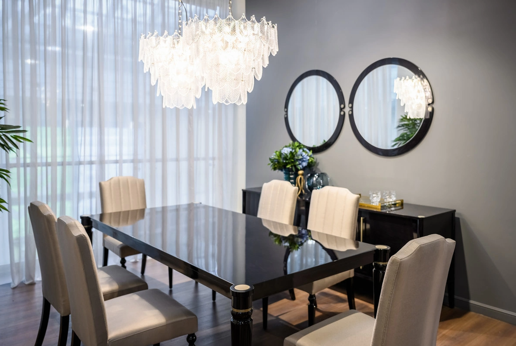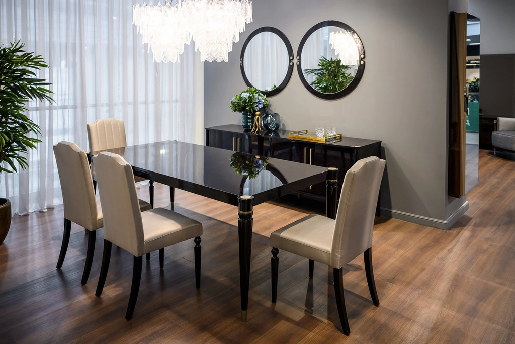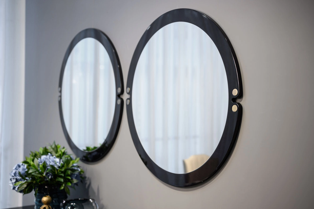 отделка черный глянцевый ясень, белое зеркало